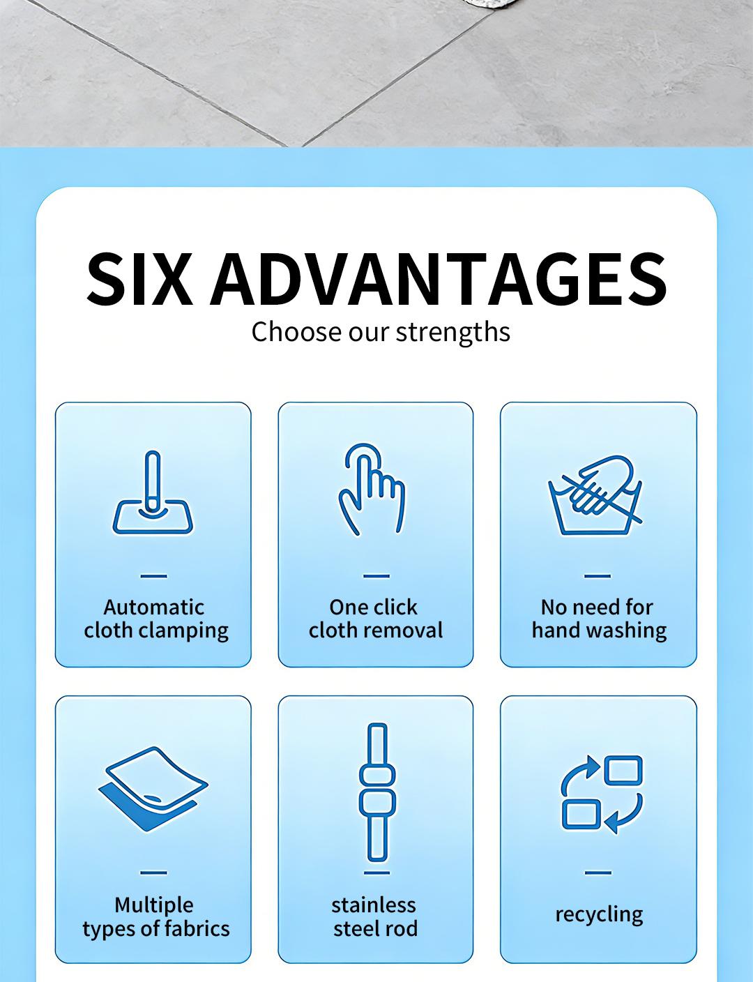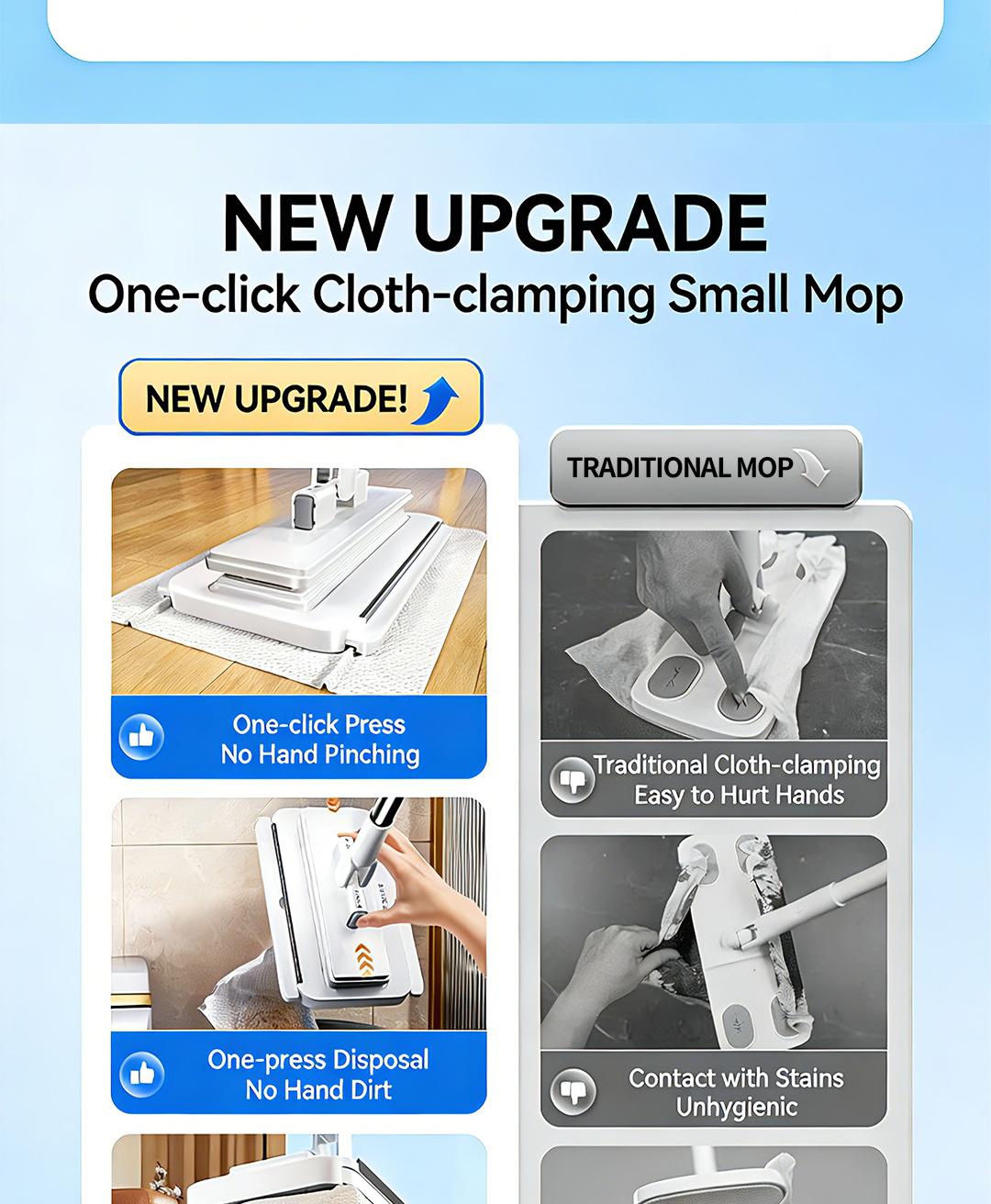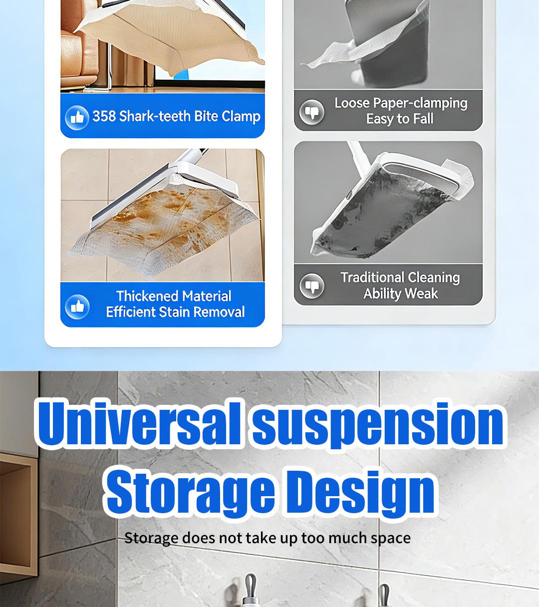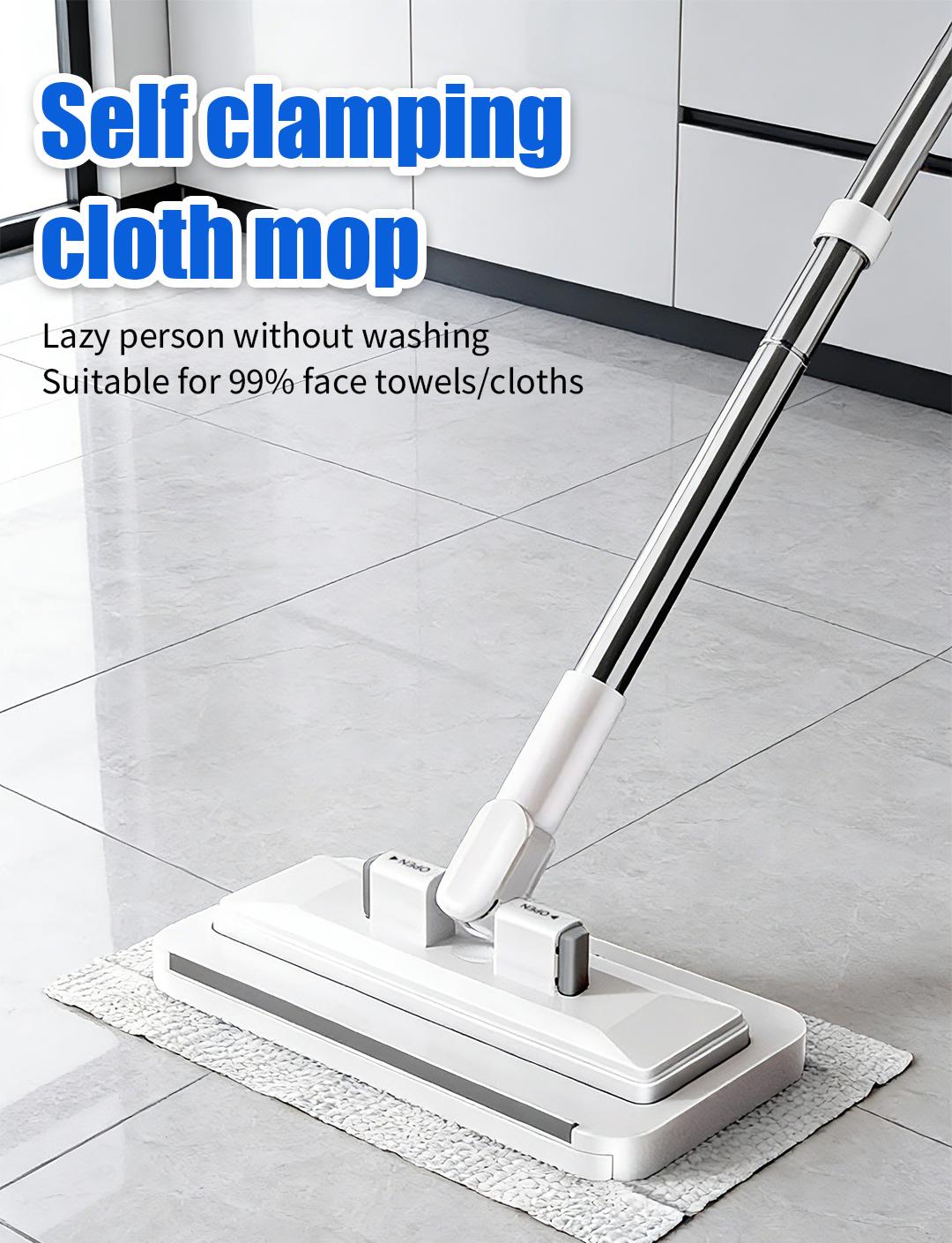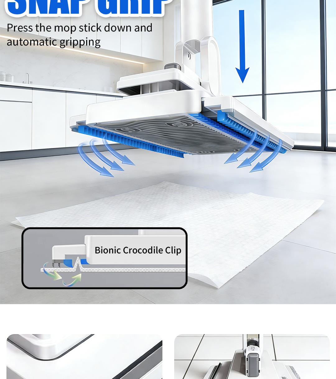SOPAMI Disposable Mop, Hands-Free Floor Mop with Clamp, Dry Wet Use Dust Mop for